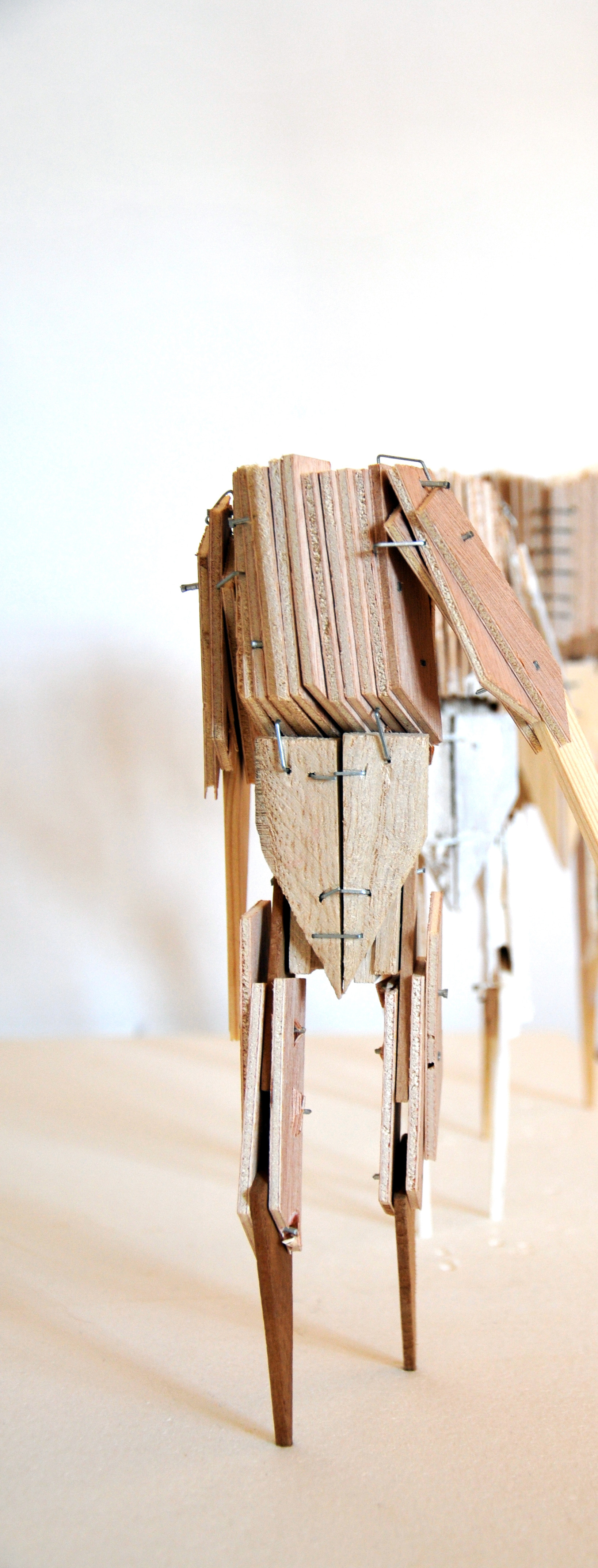 Une multitude de petits êtres réalisés en clés à châssis, les pieds coulés dans du béton marche irrémédiablement vers l'abîme qui les attend. Sans tête, ils ne voient pas le gouffre et la méprise qu'ils commettent. Ils ne sont rien, mais ils n'en ont pas conscience.