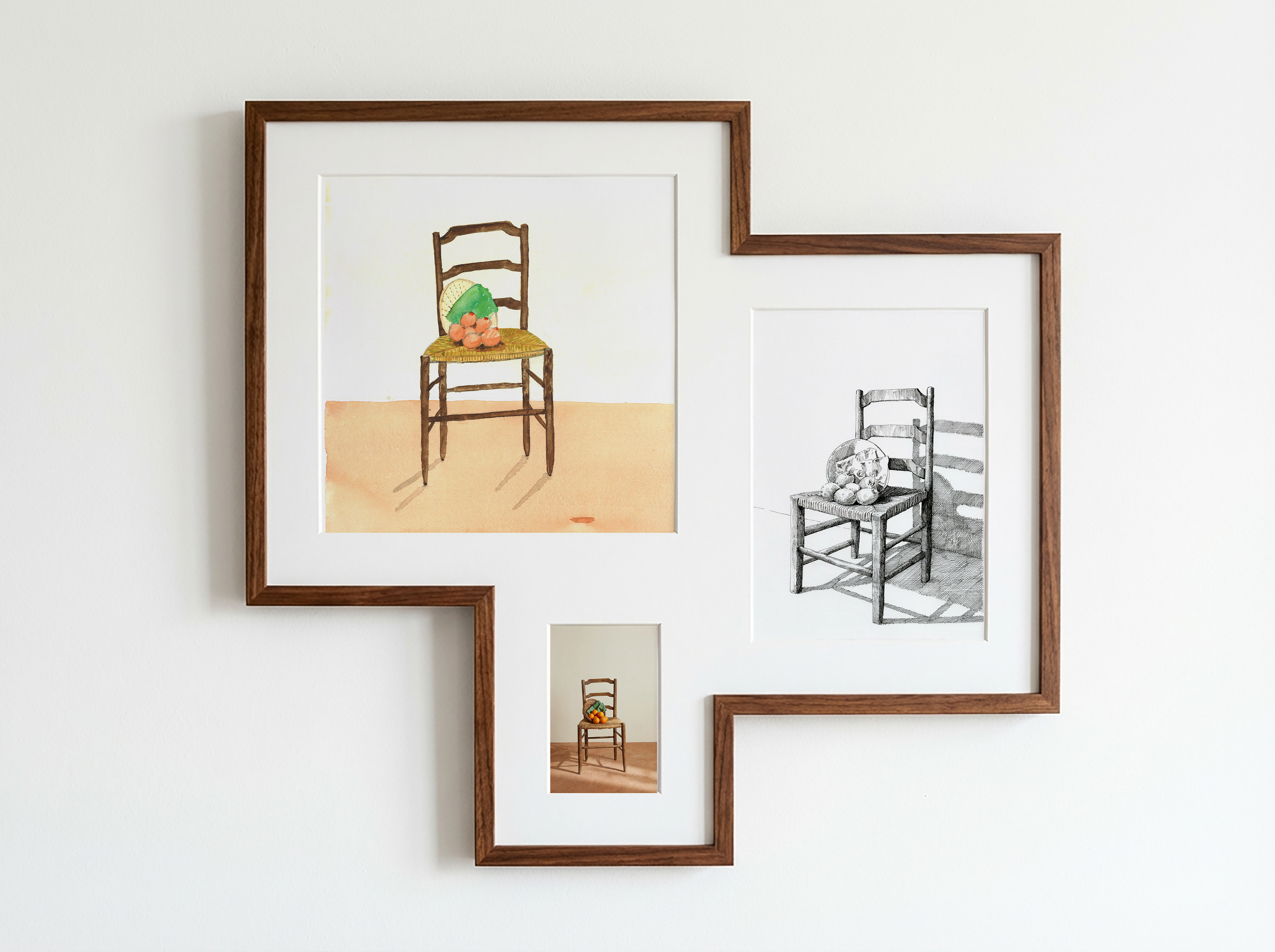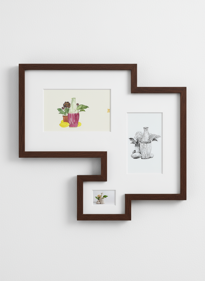 Je travaille actuellement sur un réactivation des oeuvres que mon grand-père m’a transmise à la fin de sa vie. Réinterprétée par une IA à qui j’ai raconté mon histoire, ainsi que celle de mon aïeul, j’essaie d’établir un dialogue entre les oeuvres du passé, les projections futuristes des oeuvres à venir réalisée par le deep learning, et les techniques traditionnelles que j’utilise au présent.Une triple vision, réunie formellement à l’intérieur d’un même espace fini, le cadre, qui prend ici une dimension symbolique.